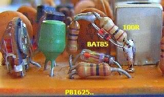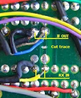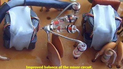 Voor een betere balans van de mixer (steeds een gelijke stroom door twee diodes) werden op PB-1631E de aansluitingen van het dioden kwartet naar L201 onderbroken en twee 10 nF condensatoren gemonteerd. Dat gaat door de diodes aan één zijde uit hun soldeergaatje te trekken en daarvoor één poot van een condensator te monteren. Elk paar diodes soldeert men dan aan de andere kant van de desbetreffende condensator. Zo blijven de printsporen intact.