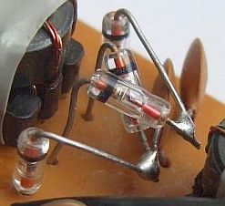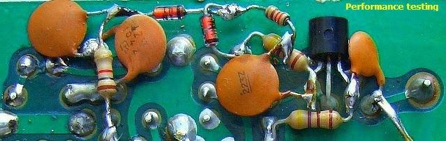 Tijdens het testen was een voorhanden zijnde BC547 transistor gemonteerd en toen alles goed werkte werd dat vervangen door een HF type. Wat bleek, drie verschillende types deden het niet zo goed als een BC547B zodat het weer teruggeplaatst werd.