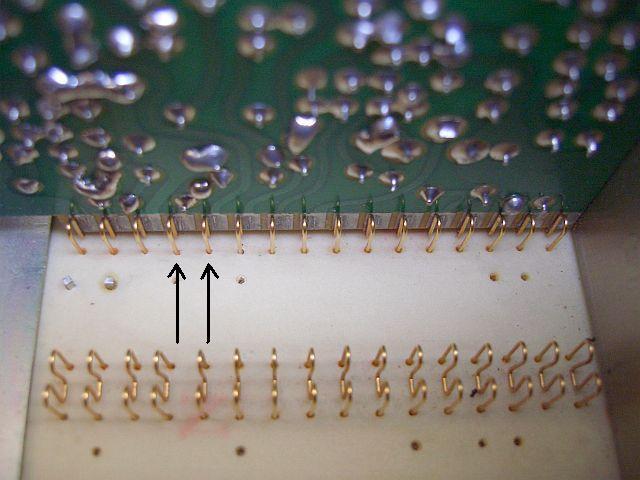 Storingen of uitvallen komen regelmatig voor door de wijze waarop de insteek printen contact met het moederbord maken. Dat merkt men vooral als de set een lange tijd niet gebruikt is. De contactsporen zijn vertind en door teveel ervan ontstaan enigszins bolle printbanen. De vergulde veren op het moederbord hebben dan de neiging om van het bolle strookje af te glijden en zodat er geen of een slecht contact is. Er zijn twee manieren om dergelijke onderbrekingen te voorkomen. Verwijder met zuiglitze het overtollige soldeer en zorg bij het plaatsen van een insteekprint dat de contactveren goed in het midden van de printsporen komt. Op de foto kunt u zien dat sommige contactveren nog maar net aan de rand van een printspoor zitten. Een derde maatregel die hier zijn nut bewezen heeft is het licht insmeren van de veren met goede contactolie.