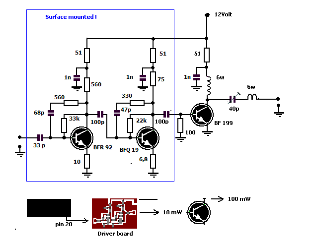 de uitgang van dit printje gaat naar de BF 199 welke in