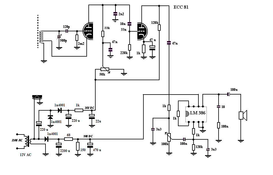 ik 36 volt voor de voeding van de ECC 83 zodat de hele ontvanger